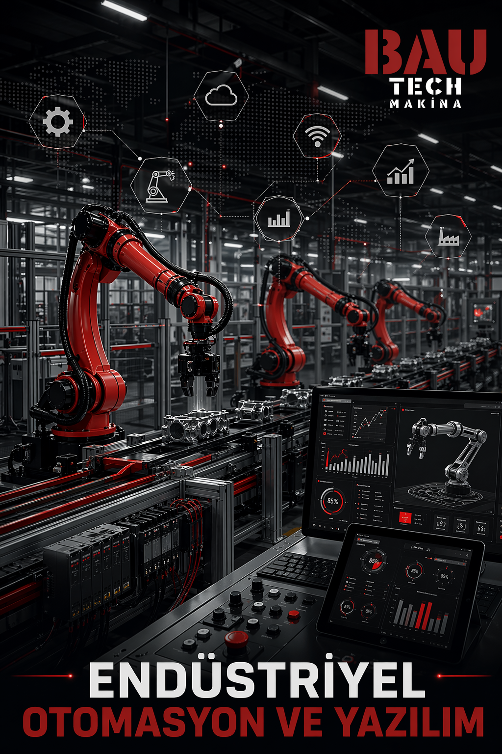 Üretim süreçlerinizi daha hızlı, daha güvenli ve daha verimli hale getirmek için ileri seviye otomasyon ve yazılım çözümleri geliştiriyoruz. Endüstriyel otomasyon sistemlerini, sahaya özel mühendislik yaklaşımı ile tasarlıyor ve uyguluyoruz.